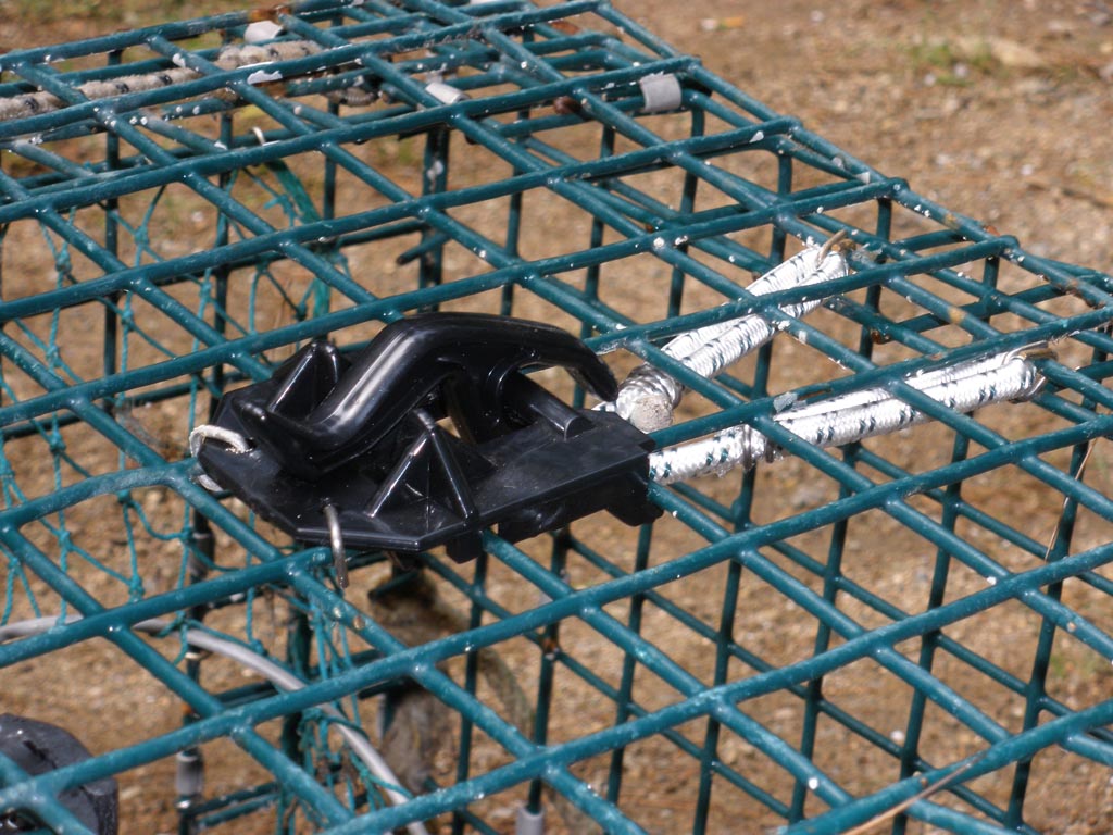 - disengages during hauling so that the trap can be hauled properly (with the tension at the bridled end of the trap)
